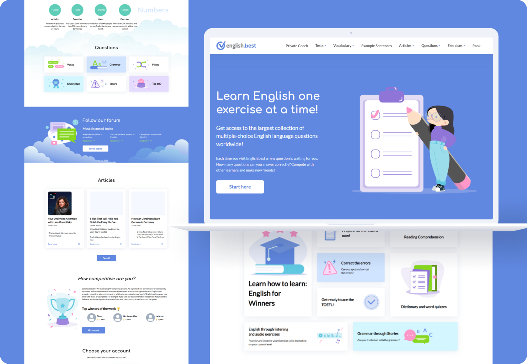 Приложение дает возможность пользователям проходить тесты, в том числе TOEFL и TOEIC, а также оставлять комментарии к ним, определить свой уровень английского и обсуждать вопросы на форуме.